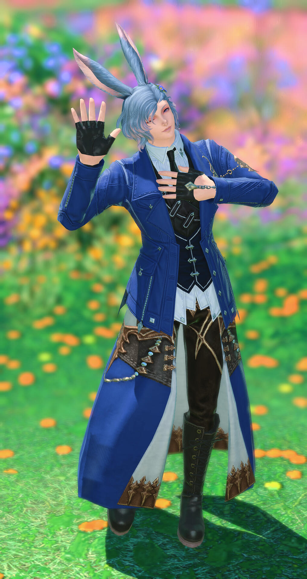 His forename comes from the local name of the aster flowers he was found napping in by villagers from a small nearby town when he first arrived in Hingashi. His surname comes from a curious book he found about a Hyur girl who fell into a strange and bizarre world. It was one of the first books he read after leaving the Skatay Range to venture out into the world.
